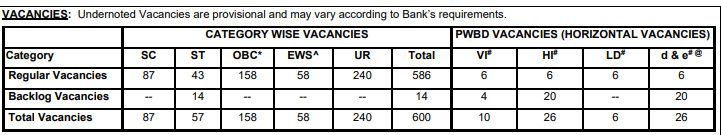 સ્ટેટ બેન્ક ઓફ ઇન્ડીયામાં પ્રોબેશનરી ઓફિસરની ભરતી માટે કેટેગરીવાઇઝ જગ્યાઓ નીચે પ્રમાણે છે.